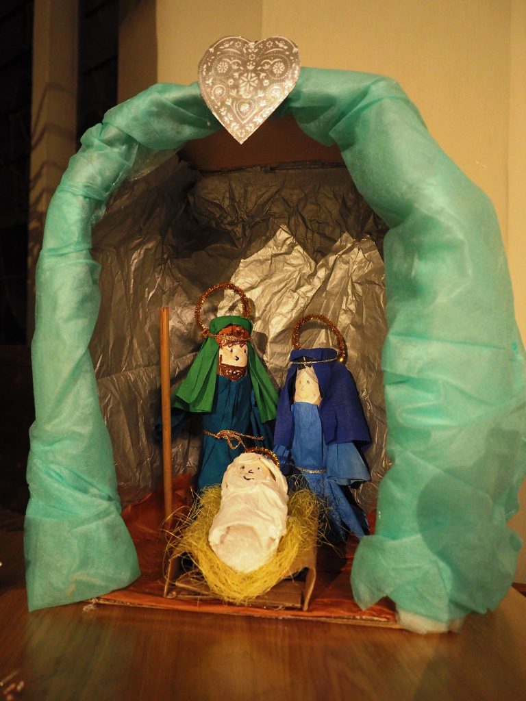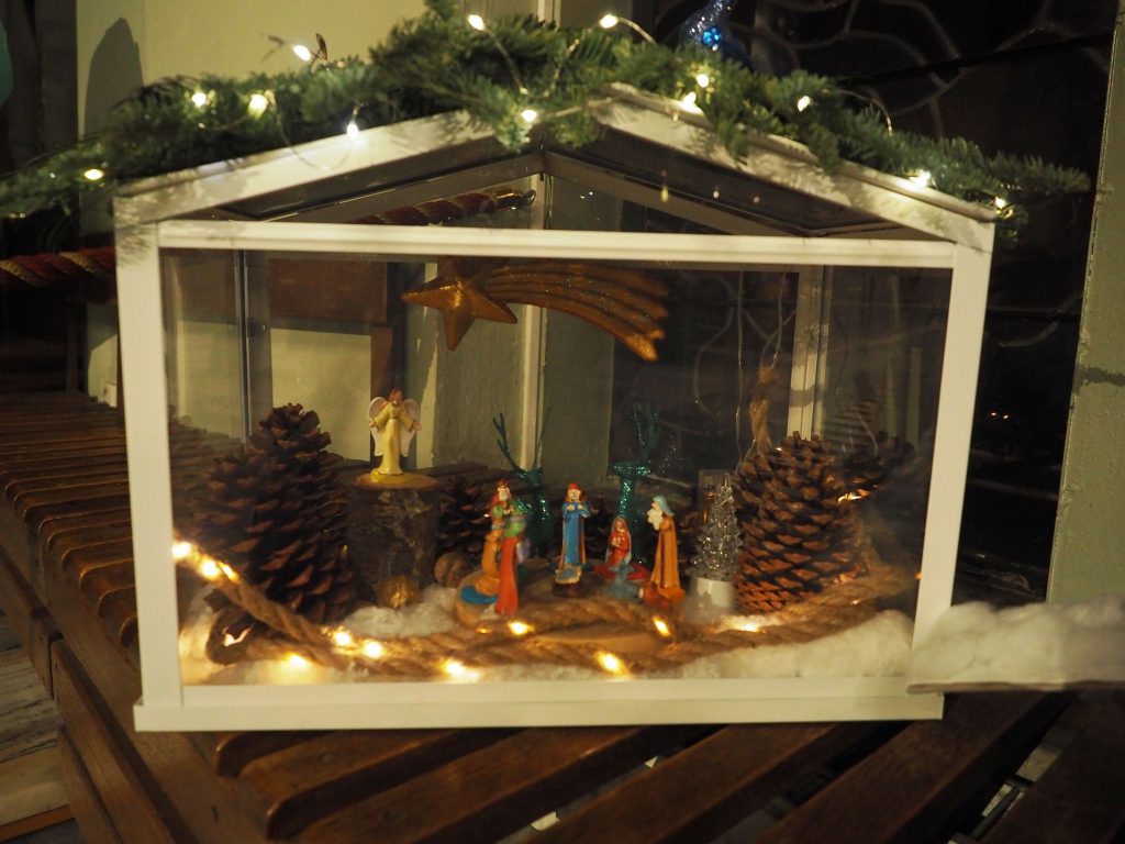4. Szopki stawiamy na ławce pod witrażami, przy dekoracji roratniej.