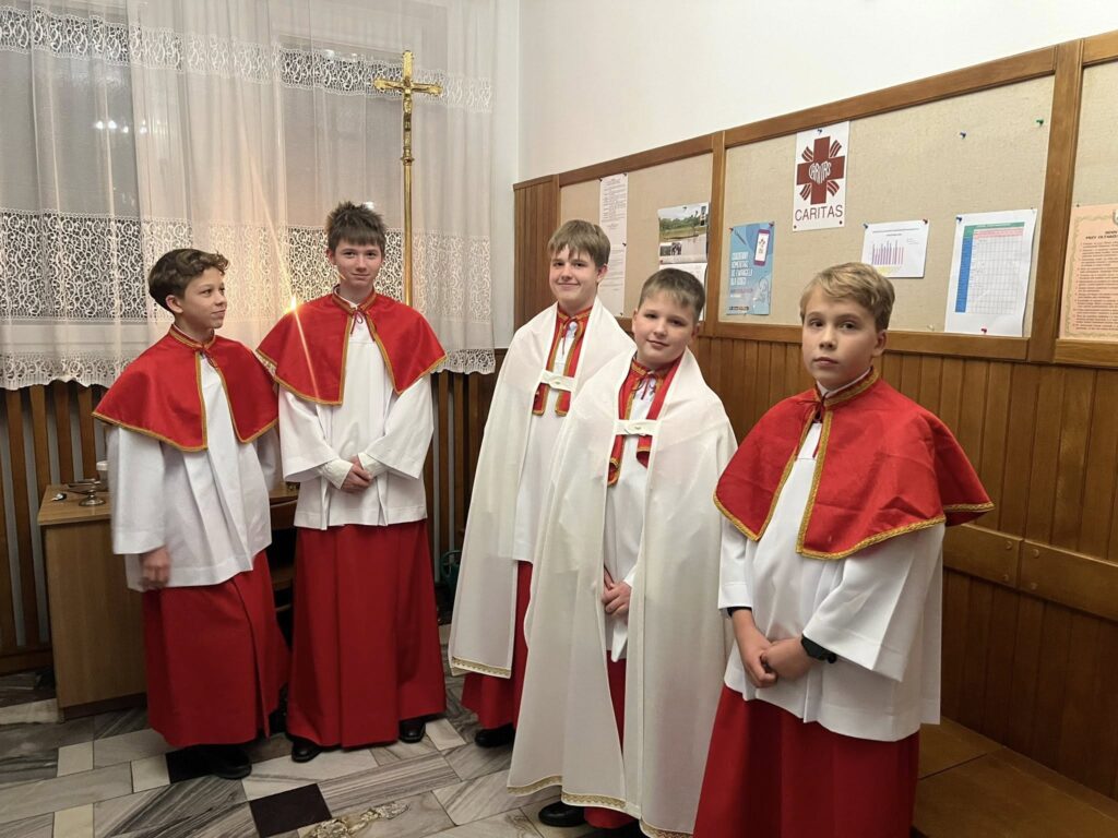 Najmłodsi adepci Świętej Liturgii przygotowują się pod okiem ks. Mateusza do rzetelnego pełnienia poszczególnych funkcji liturgicznych. W ich dobrym wzroście pomagają starsi bracia, ministranci i lektorzy, którzy wspierają ich wiedzą liturgiczną, doświadczeniem służby przy Ołtarzu Pańskim.