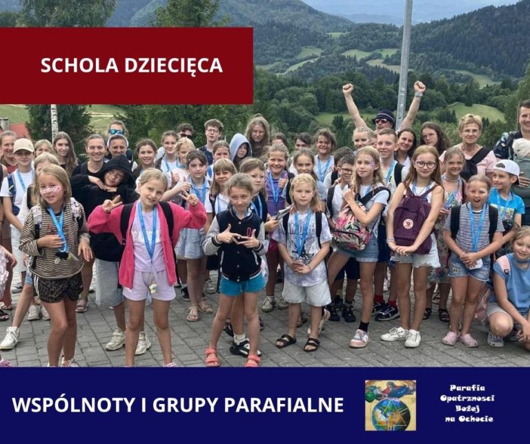 W naszej parafii od wielu lat funkcjonuje schola dziecięca. Jest to wspólnota złożona z naszych najmłodszych Parafian i Parafianek. Dzieci tworzą bardzo radosną grupę: śpiewają, bawią się, koncertują, biorą udział w festiwalach, wyjeżdżają na wspólne wycieczki, a przy tym formują swoją wiarę.