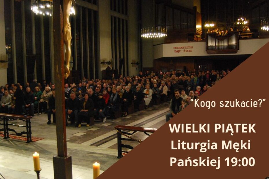 W Wielki Piątek zapraszamy na ciemną jutrznię o godz. 8:00 w dolnym kościele. Spowiedź w Wielki Piątek w górnym kościele od 9:00 do 12:00 i od 15:00 do 18:00. O godz. 19:00 Liturgia Męki Pańskiej.
